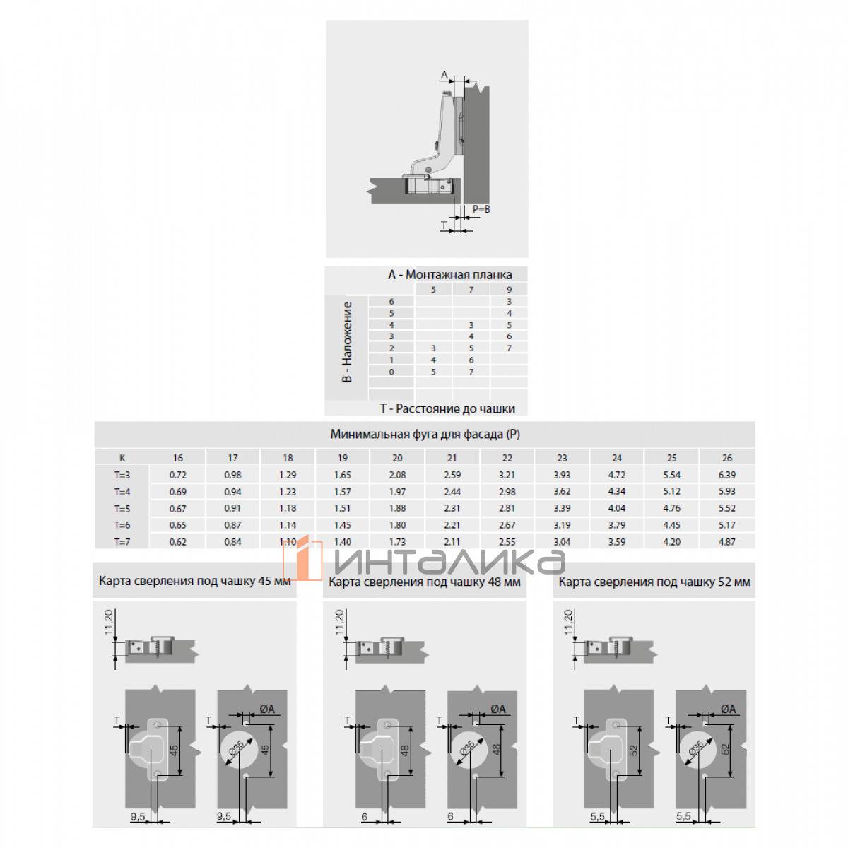 Скрытая мебельная петля SAMET StarTrack, вкладная, без пружины