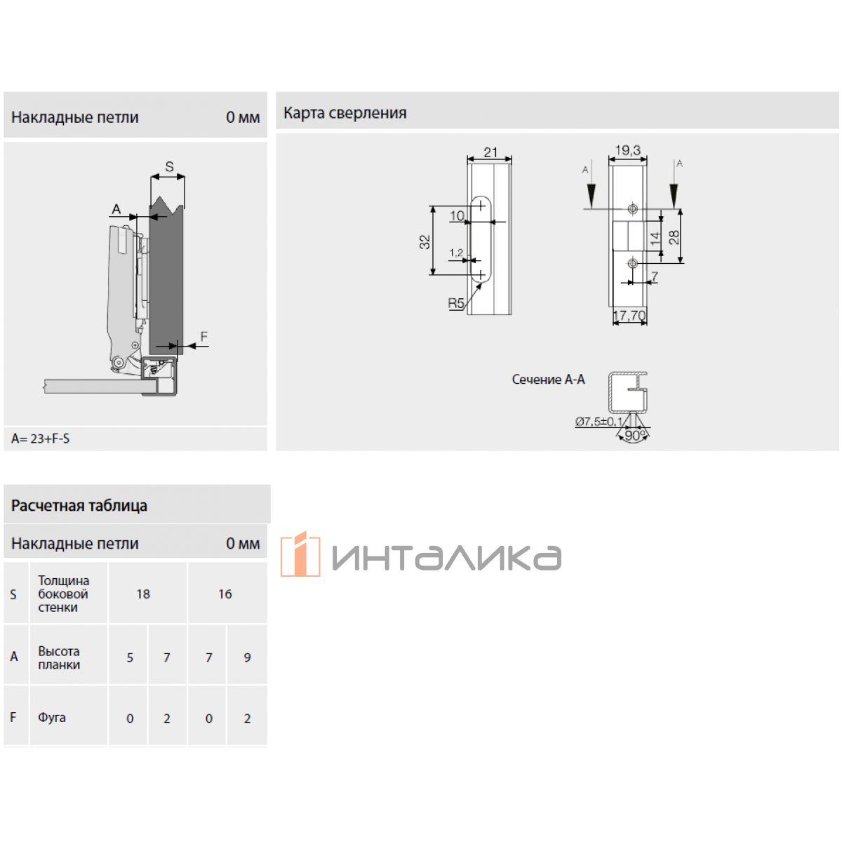 Скрытая мебельная петля премиум-класса SAMET Master для узких алюминиевых рамок, накладная