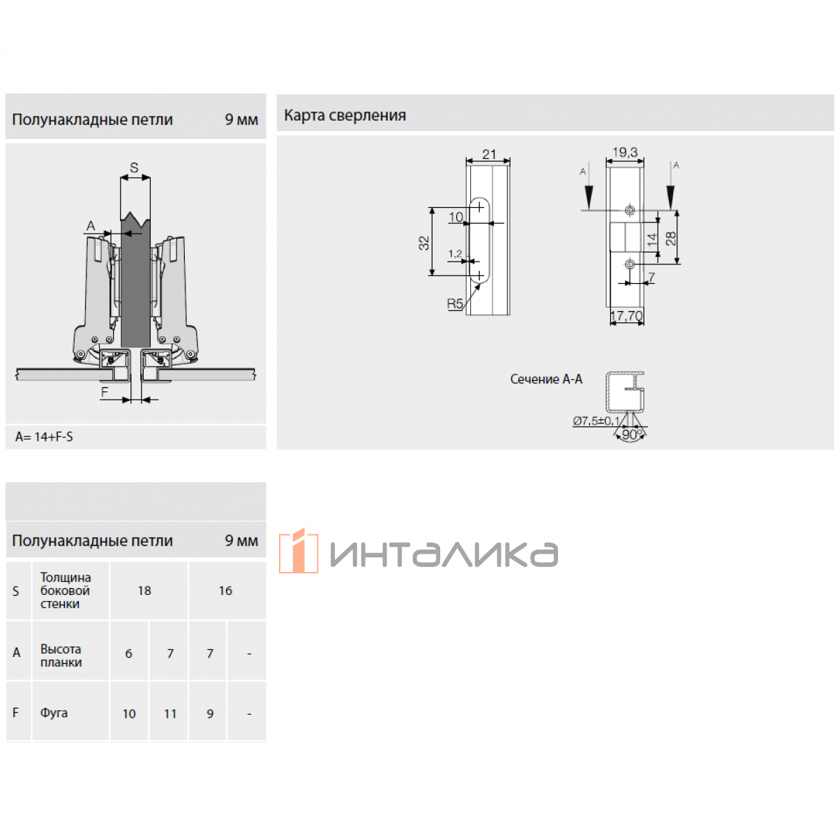 Скрытая мебельная петля премиум-класса SAMET Master для узких алюминиевых рамок, полунакладная