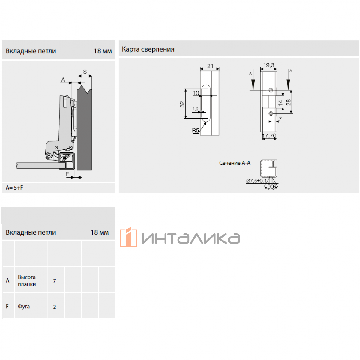 Скрытая мебельная петля премиум-класса SAMET Master для узких алюминиевых рамок, вкладная