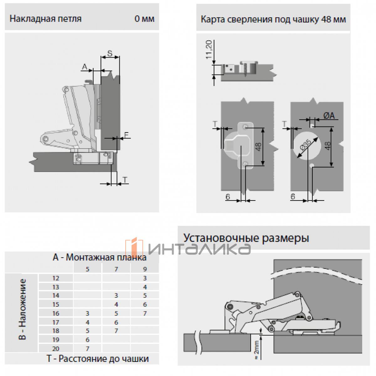 Скрытая мебельная петля SAMET StarTrack 165°, накладная, для большого угла открывания