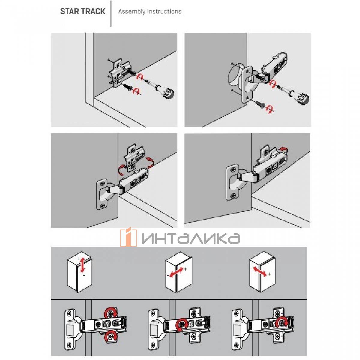 Примечание: рекомендуется использовать с петлями Star Track для угловых шкафов с углом 165° и петлями Star для угловых шкафов