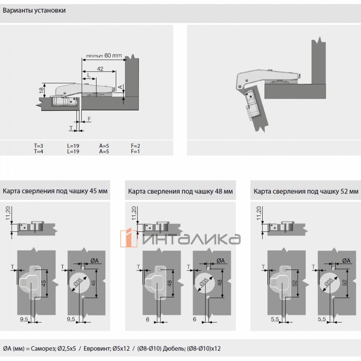 Чашка петли по глубине 11,2 мм, диаметр составляет 35 мм, крепится на саморезы Ø3,5x16 мм