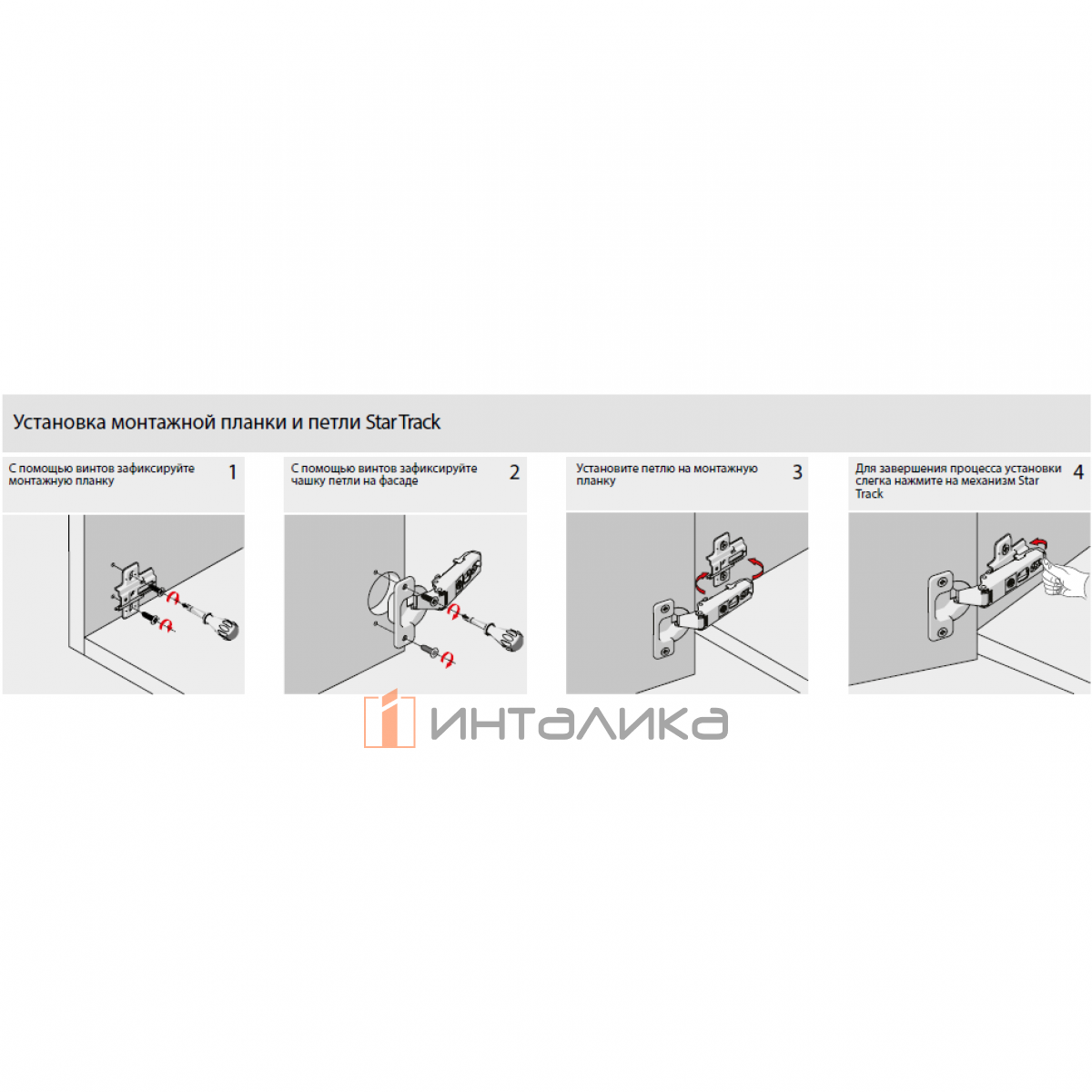 Скрытая мебельная петля SAMET StarTrack, вкладная, под фальшпанель