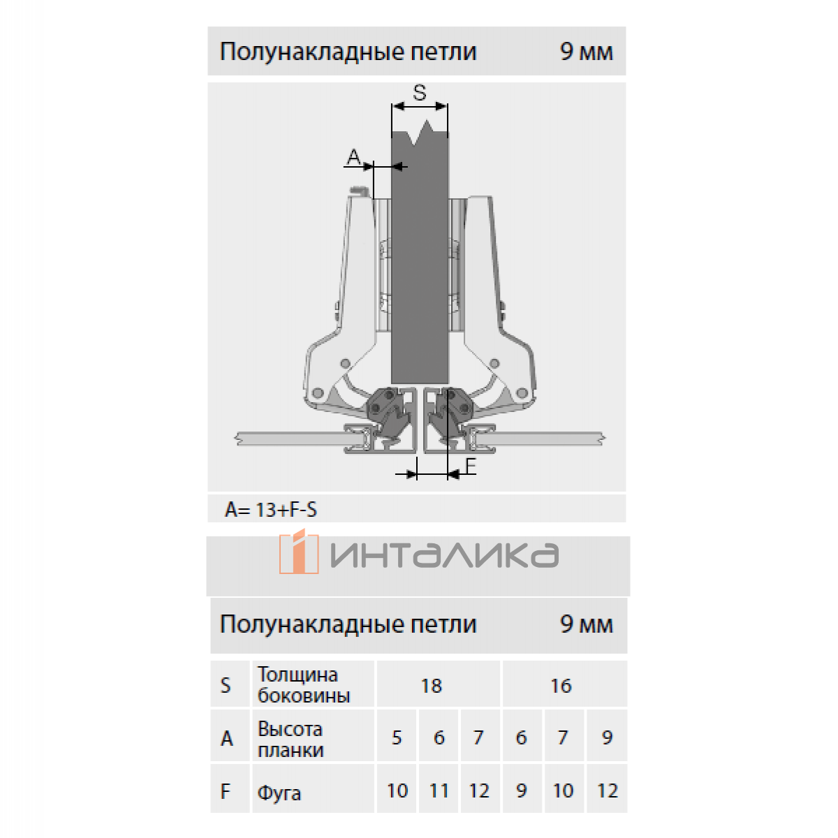 Скрытая мебельная петля SAMET StarTrack для алюминиевого профиля Decofix, полунакладная