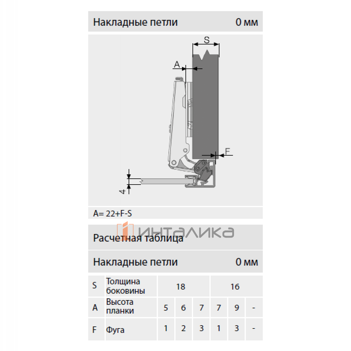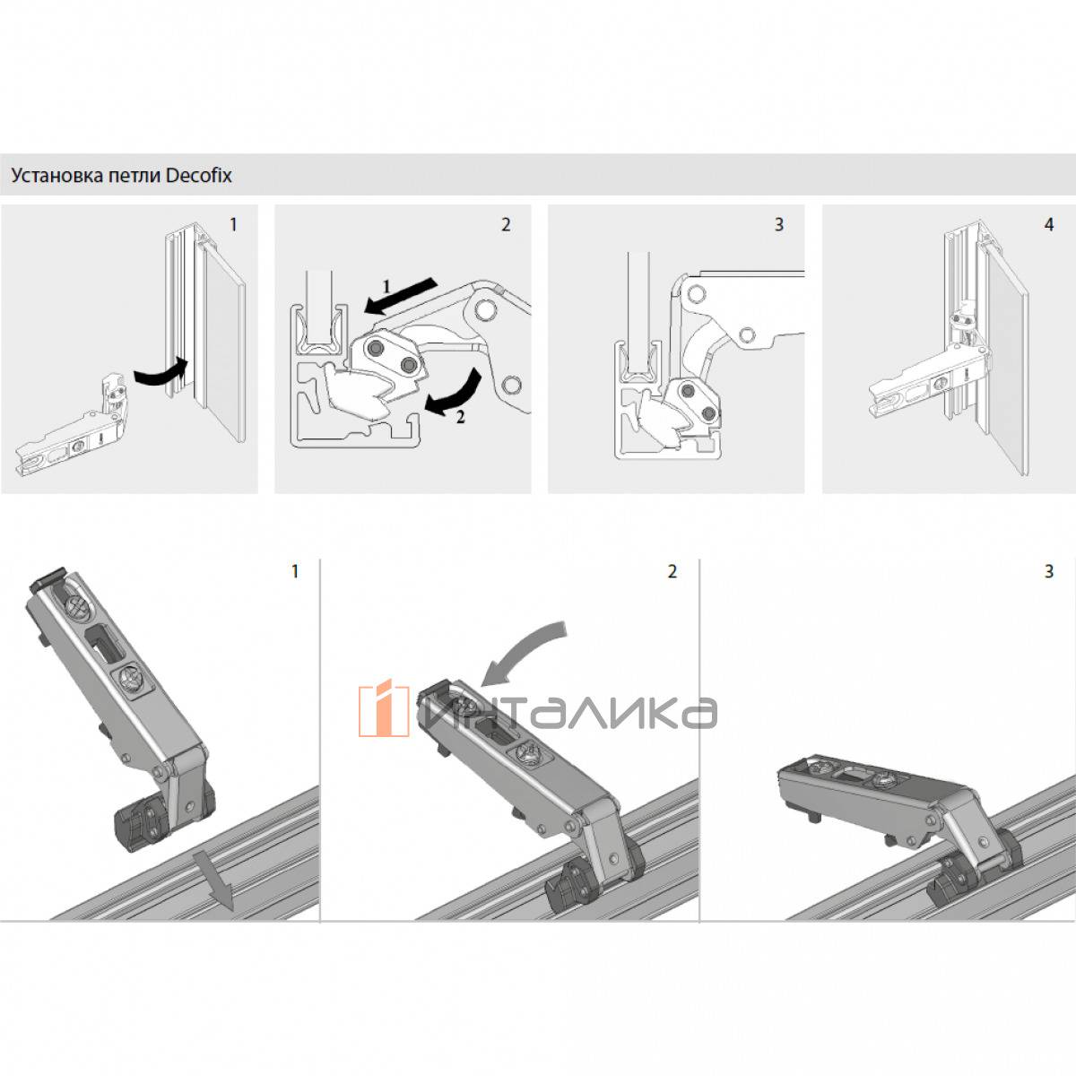 Скрытая мебельная петля SAMET StarTrack для алюминиевого профиля Decofix, накладная