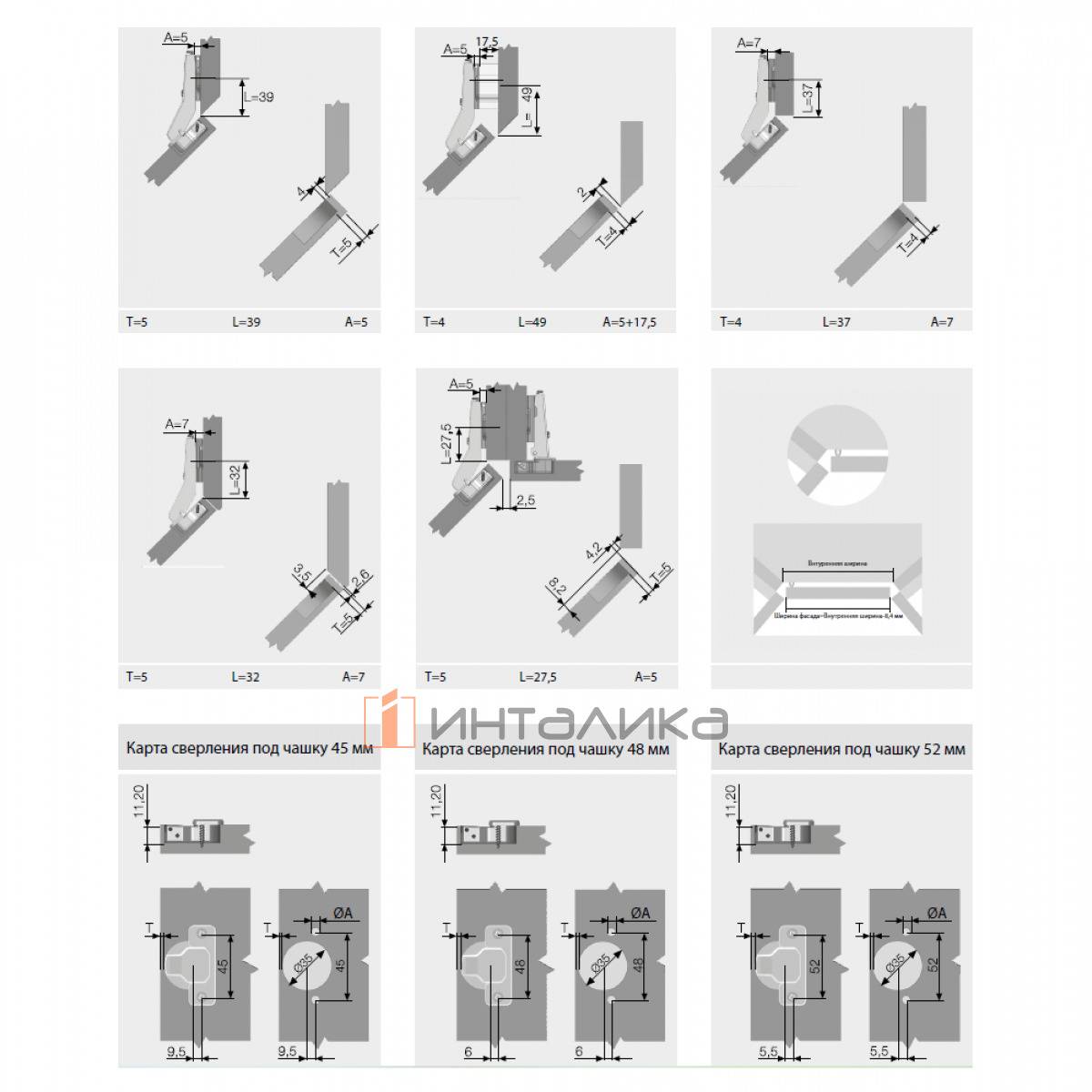 Скрытая мебельная петля SAMET StarTrackугловая, накладная, без пружины