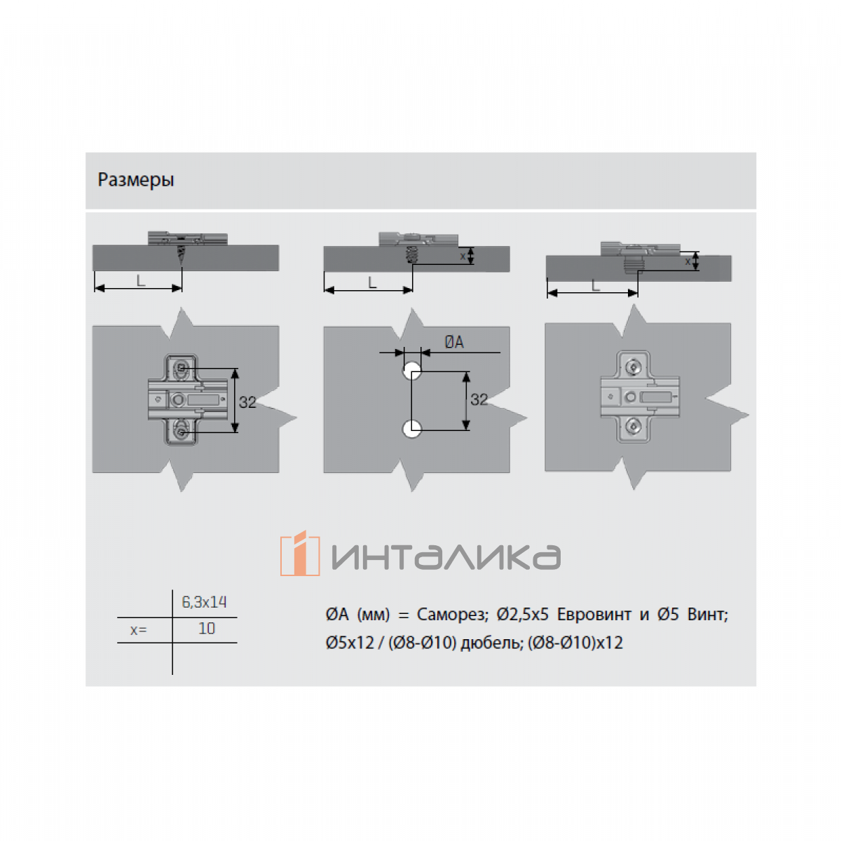 Расстояние между центрами винтов - 32 мм, от передней кромки до центра винта - 37 мм
