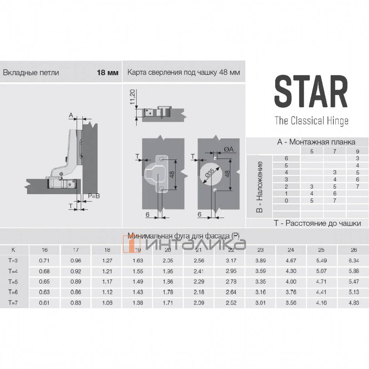 Петля SAMET Star 110°, для дверей 16-26, вкладная, TH48 Ø35, под саморез, Slide-On, никель, 101733Y