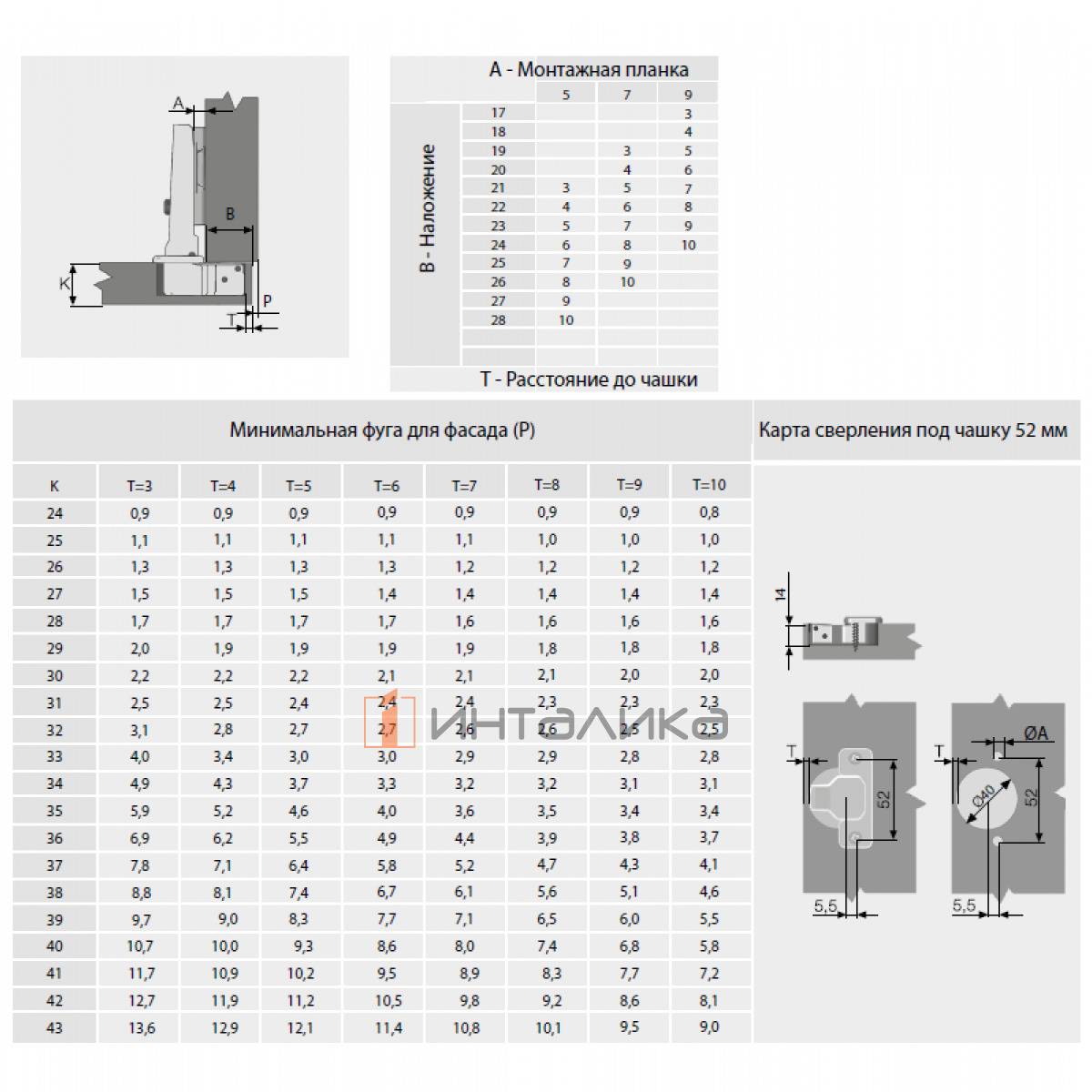 Скрытая мебельная петля SAMET Star 95°, накладная, для толстых фасадов
