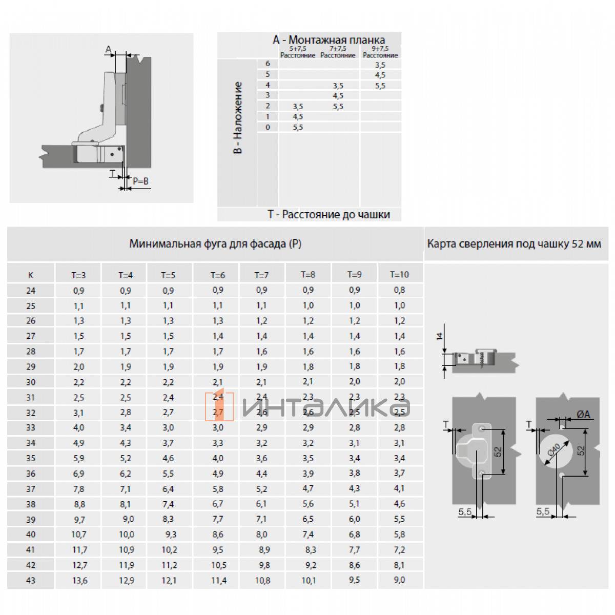 Скрытая мебельная петля SAMET Star 95°, вкладная, для толстых фасадов
