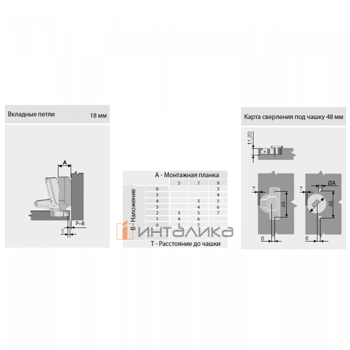 Скрытая мебельная петля SAMET Star, вкладная, для большого угла открывания