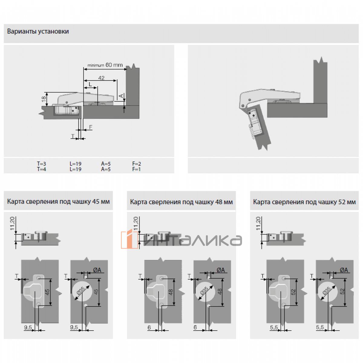 Скрытая мебельная петля SAMET Star 90° под фальшпанель, вкладная