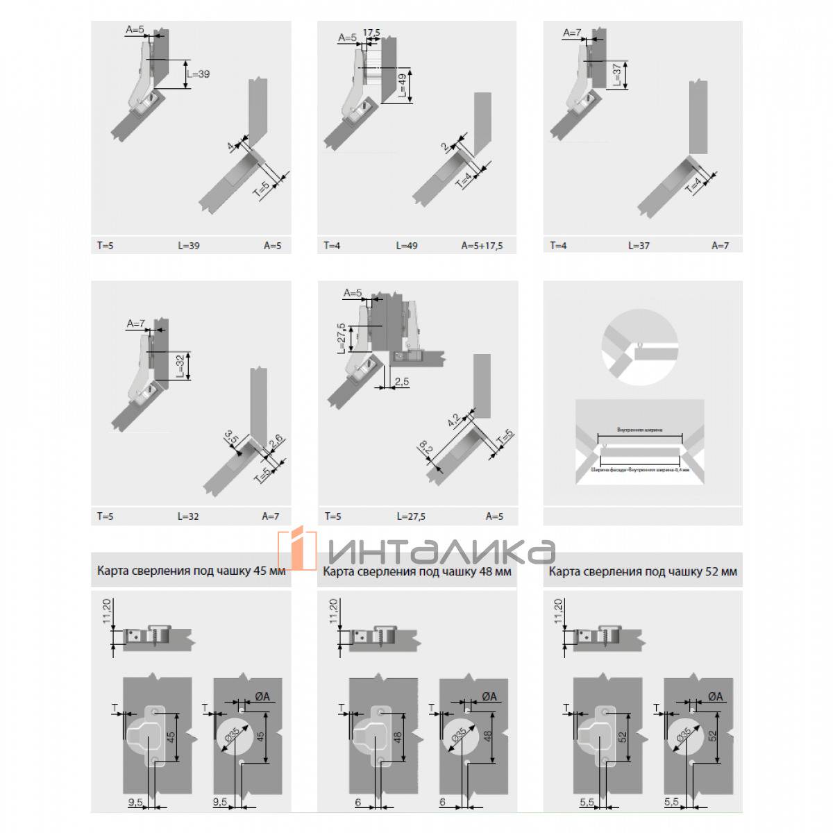 Скрытая мебельная петля SAMET Star для угловых фасадов, накладная