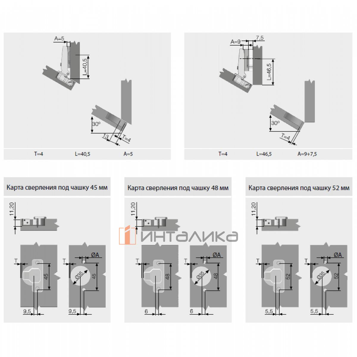 Скрытая мебельная петля SAMET Star для угловых фасадов, накладная