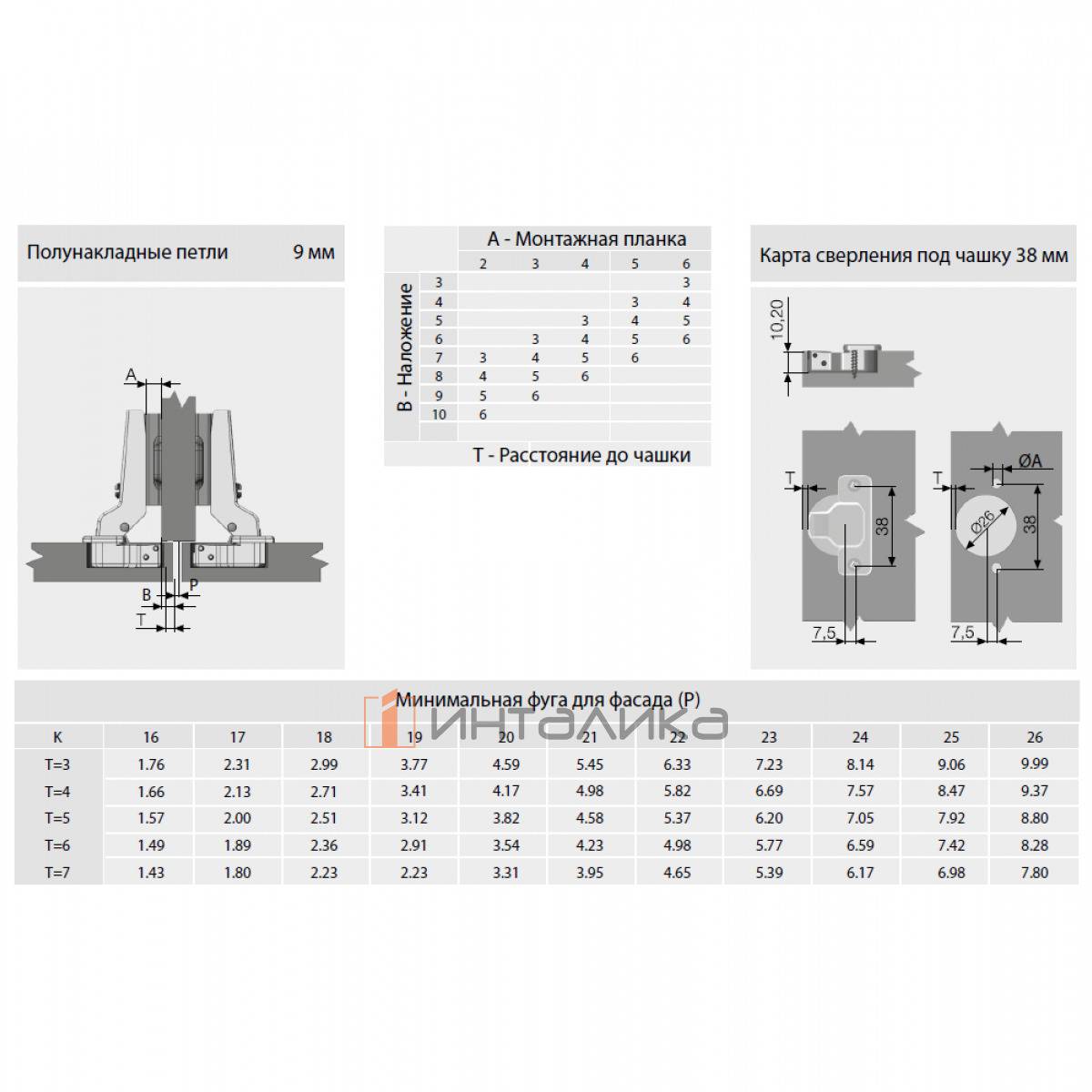 Диапазон наложения двери от 3 до 10 мм