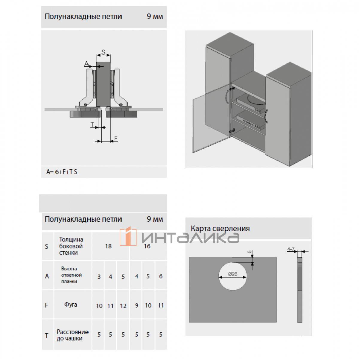 Скрытая мебельная петля SAMET Star mini для стеклянных фасадов, полунакладная
