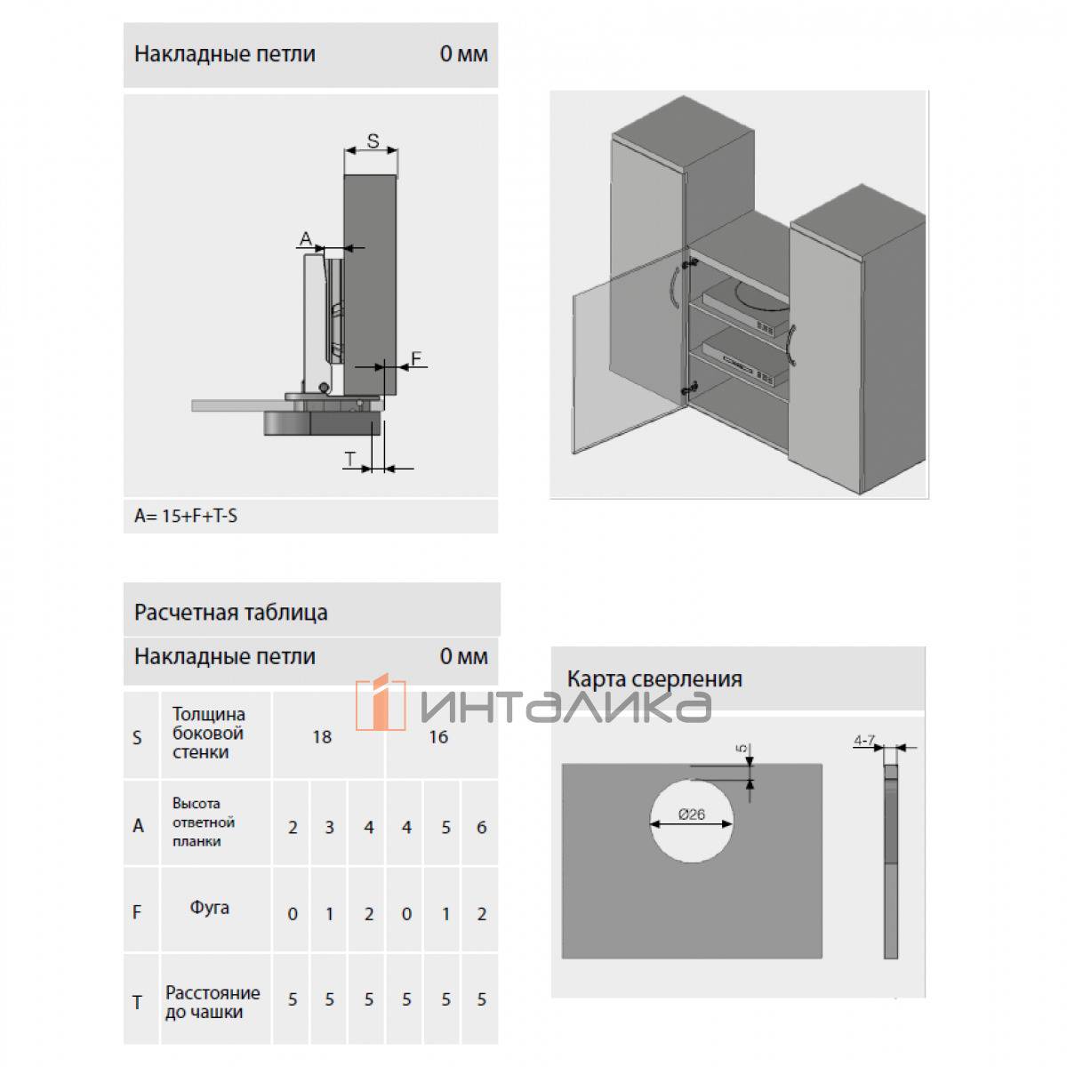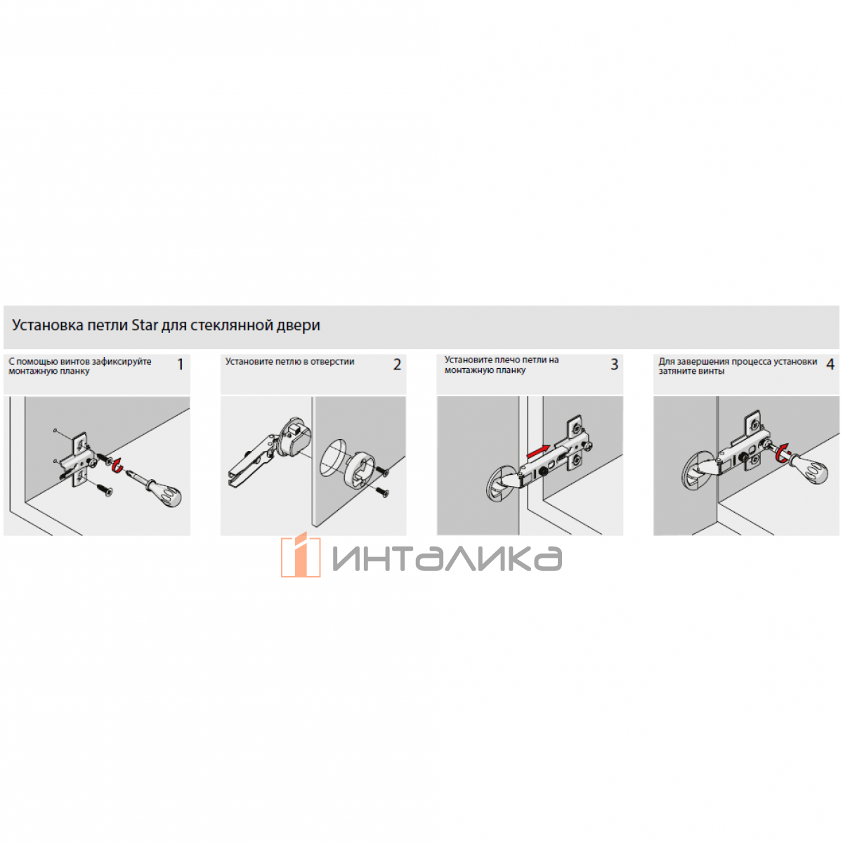 Скрытая мебельная петля SAMET Star mini для стеклянных фасадов, накладная