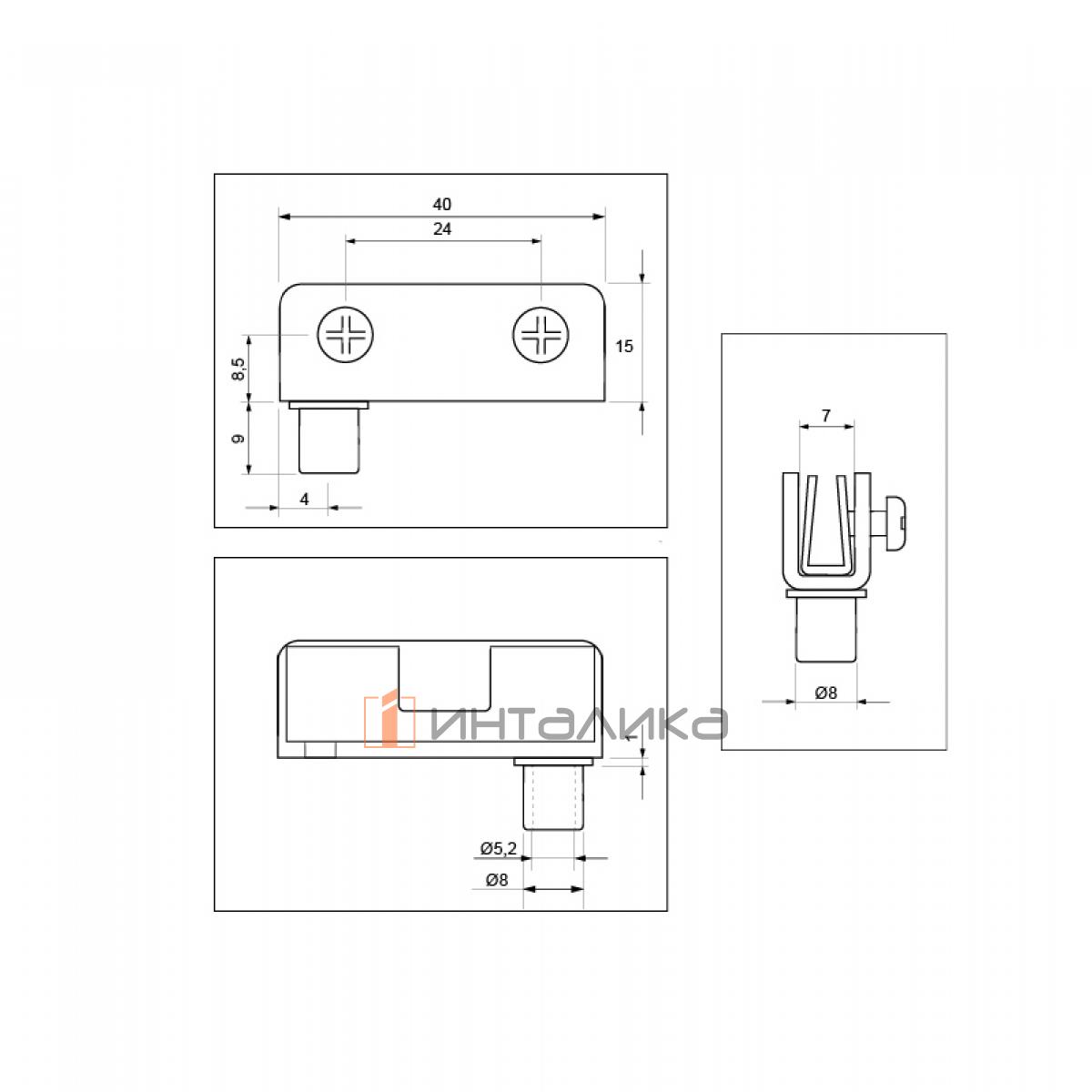 Петля SAMET 180° типа \\\"U\\\" для стеклянных дверей без сверления, никель, 103091