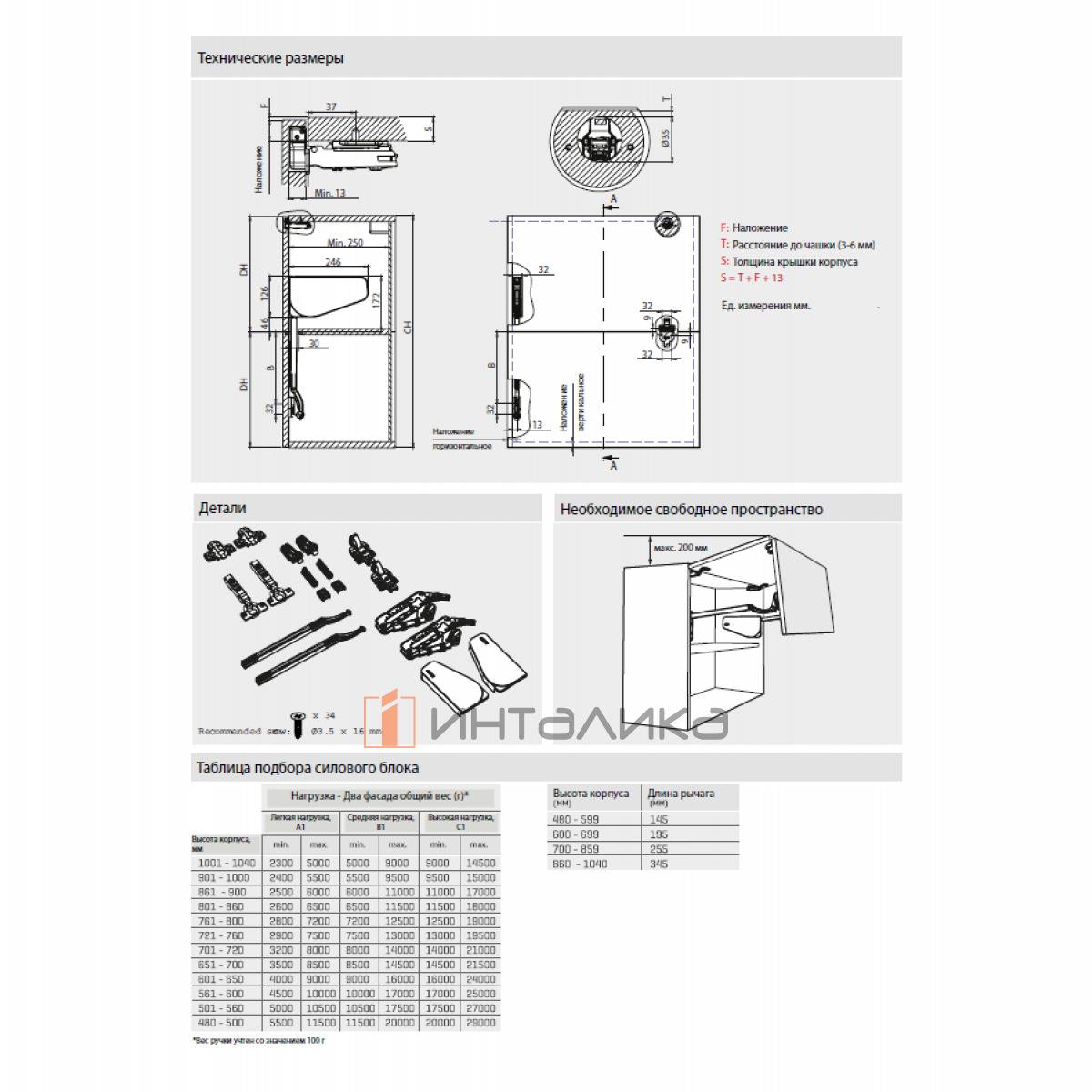 Комплект складного подъемного механизма SAMET Multi-Mech, C1, рычаг 145, G9.0-29.0, H480-599, белый, 12408181000101