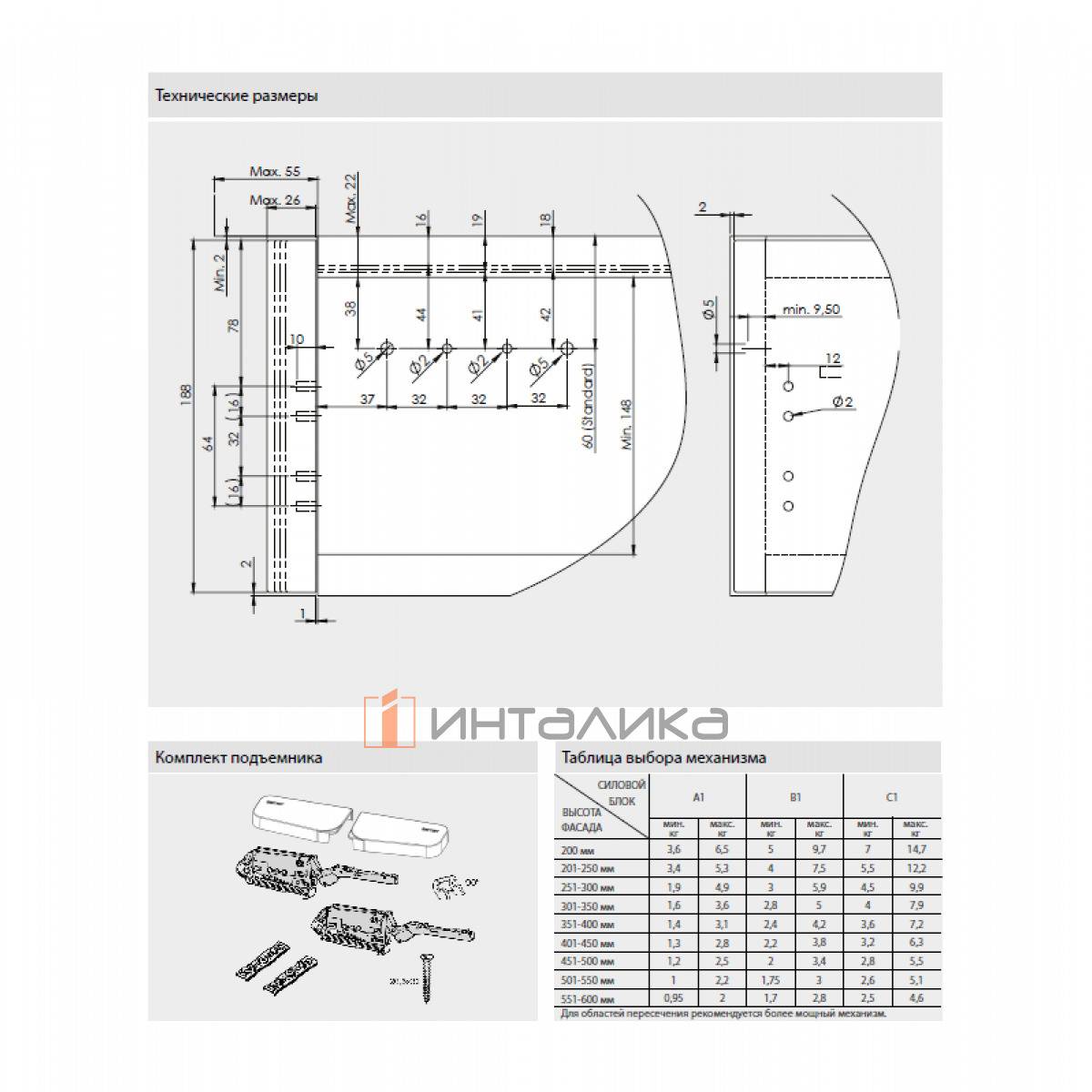 Адаптация под вес фасада - механизм настраивается в зависимости от массы дверцы для плавного хода