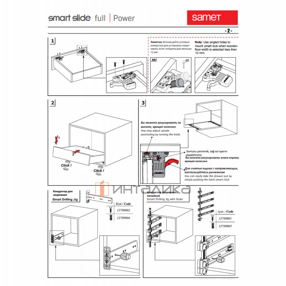 Комплект скрытых направляющих частичного выдвижения SAMET Smart Slide для деревянных ящиков