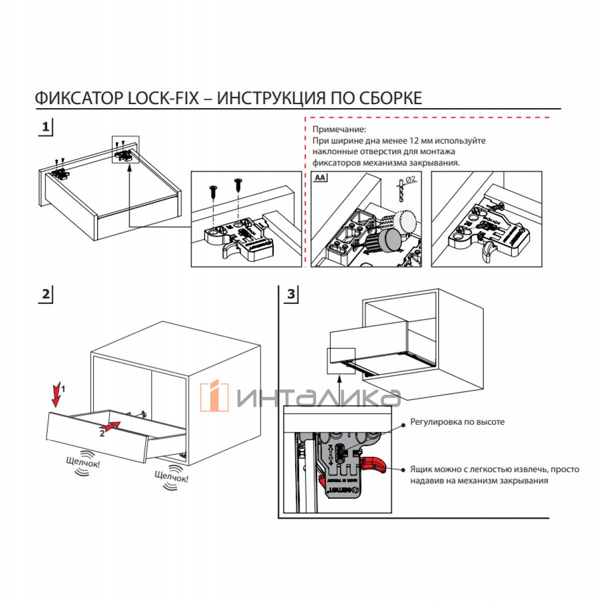 Быстрый удобный надвижной монтаж ящика без инструментов, с помощью фиксаторов Lock Fix (в комплекте)