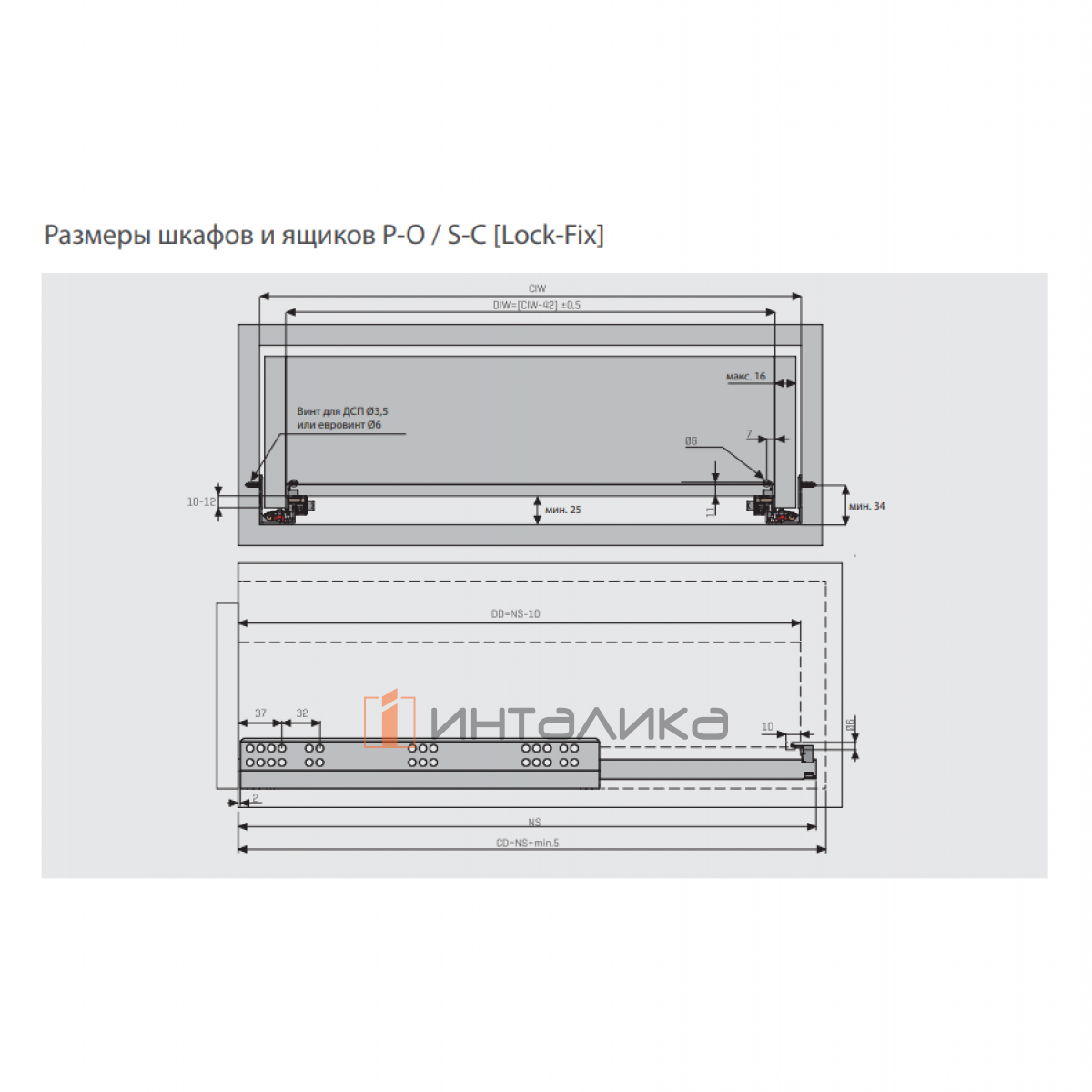 Быстрый удобный надвижной монтаж ящика без инструментов, с помощью фиксаторов Lock Fix (в комплекте)
