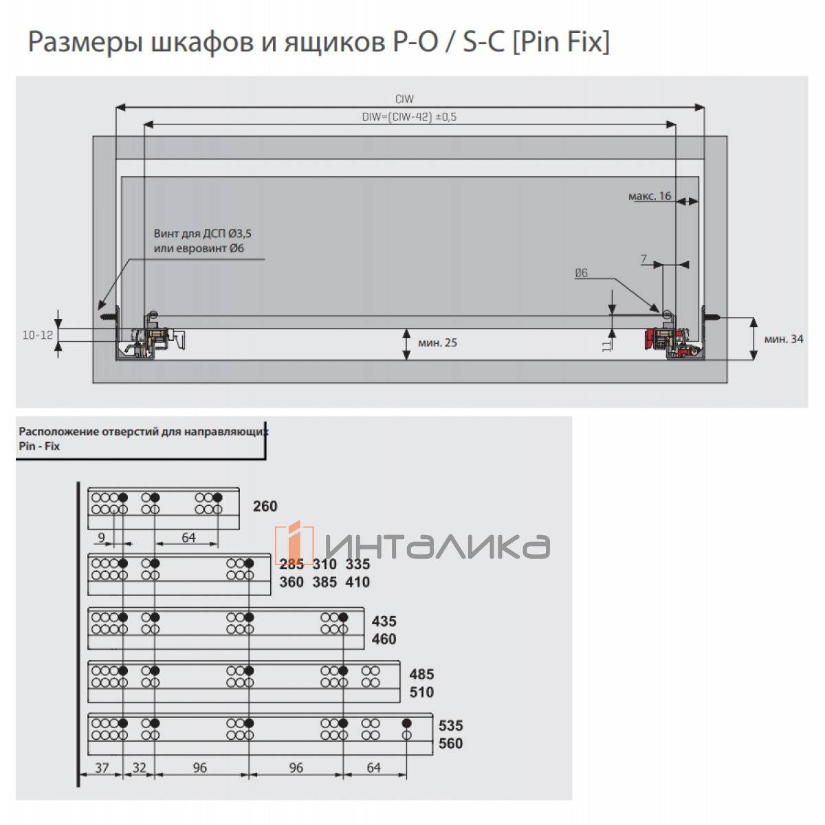 Быстрый удобный надвижной монтаж ящика без инструментов, с помощью фиксаторов Pin Fix (в комплекте)