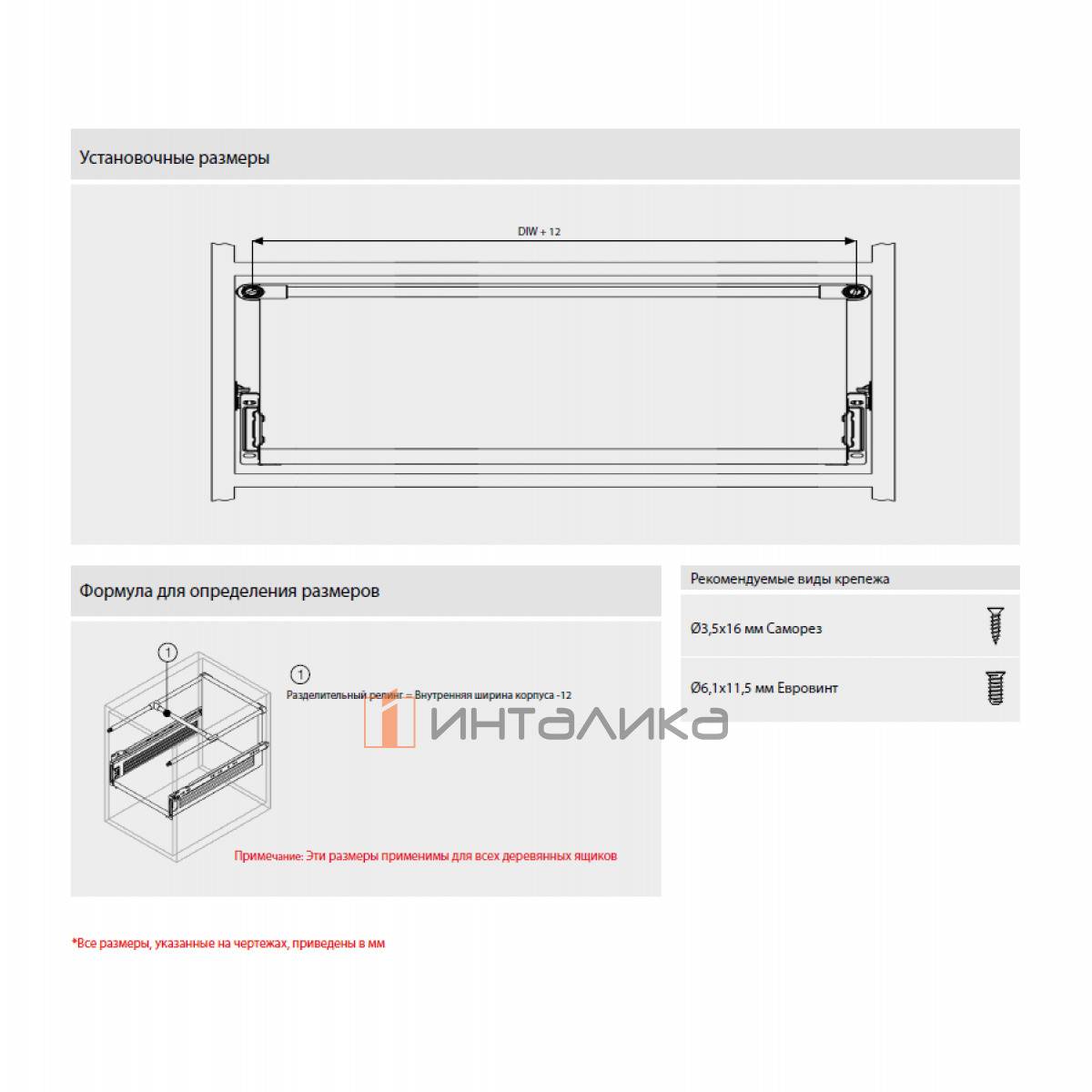 Позволяют регулировать положение фасада и легко устанавливать / снимать разделители без инструментов