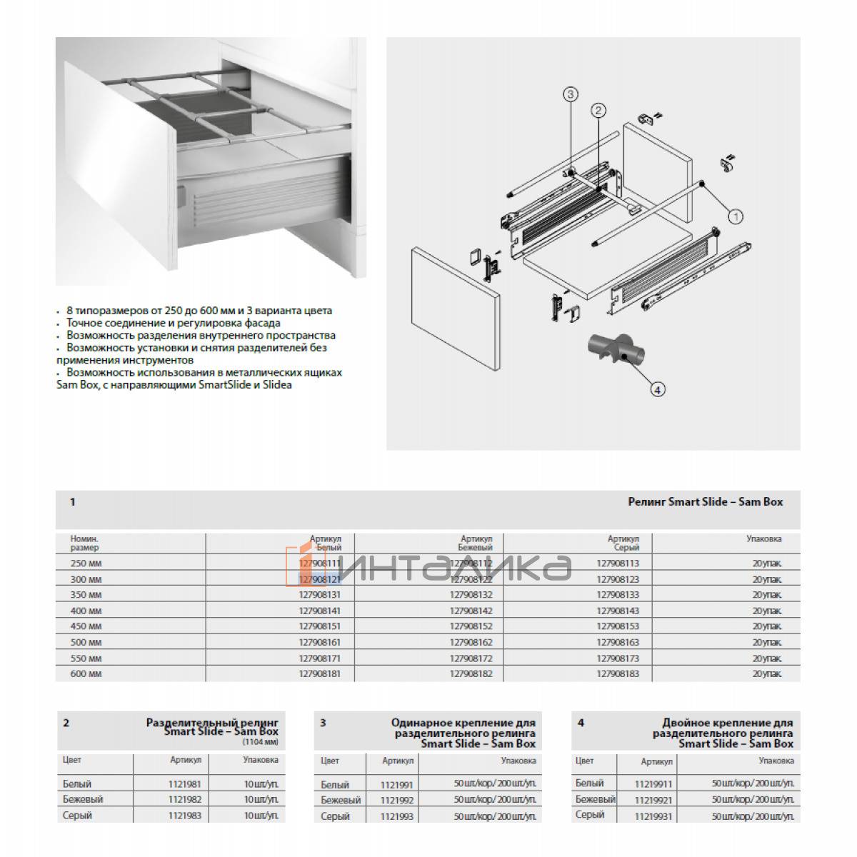 Комплект рейлингов для ящика SAMET Sambox/Smart Slide, NL350, белый, 127908131