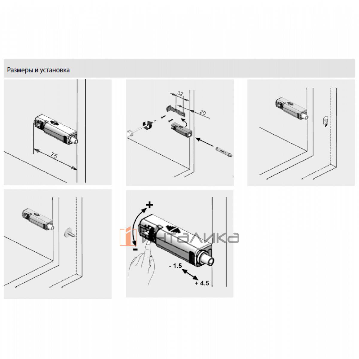 Обеспечивает возможность установки коротких толкателей в шкафу без сверления