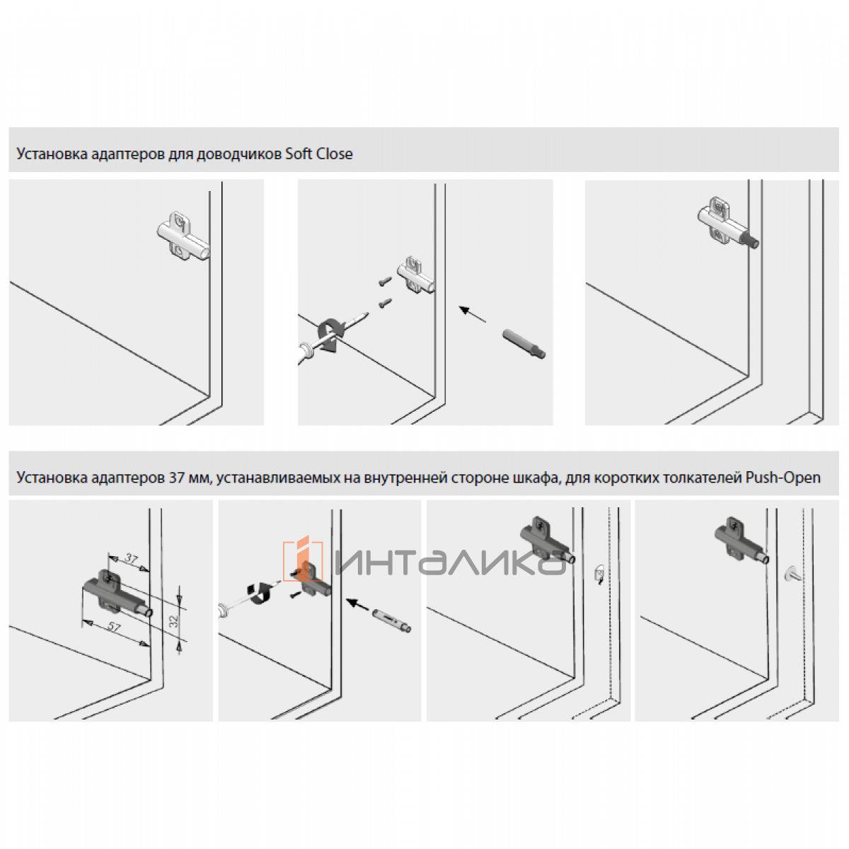 Обеспечивает возможность установки доводчиков Plus Soft-Close и коротких толкателей Push-Open в шкафу