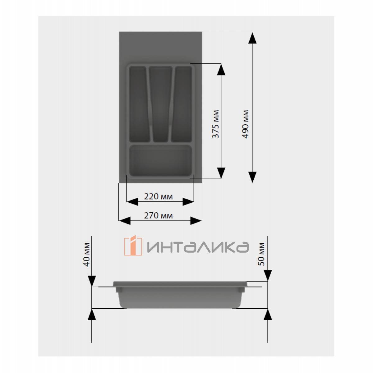 Лоток для столовых приборов SAMET, 270х490х50, пластик, серый, 11410013