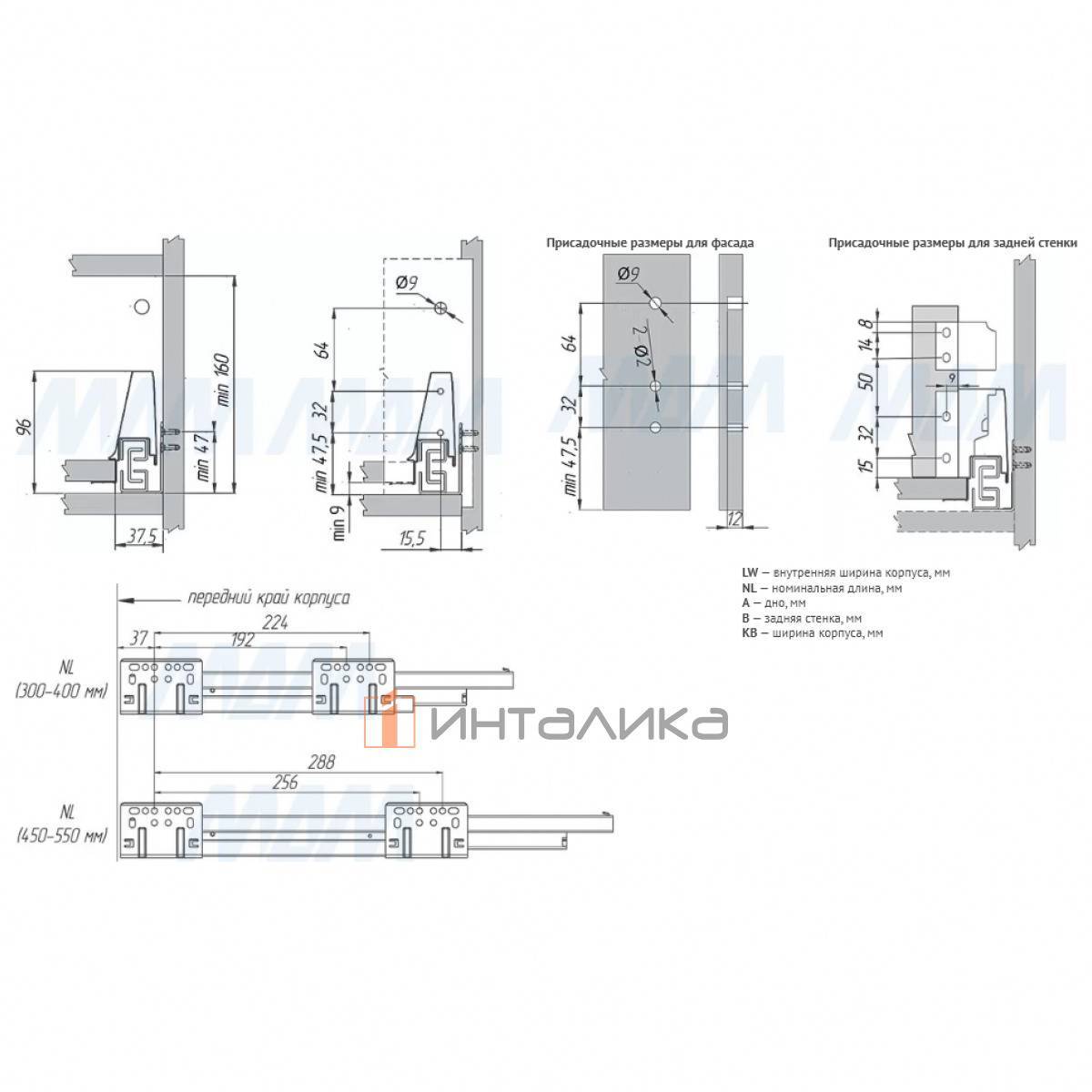 M-TECH стандартный ящик с рейлингом, L350, полное выдвижение, G40, белый, MT.MS.350W (белый)