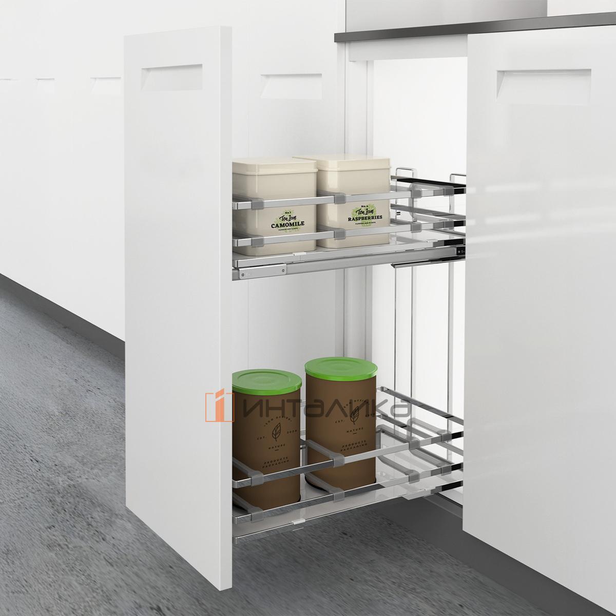 Выдвижная двухъярусная корзина Hettich LARIO с плоским релингом - оптимальное решение для организации пространства в нижних кухонных тумбах
