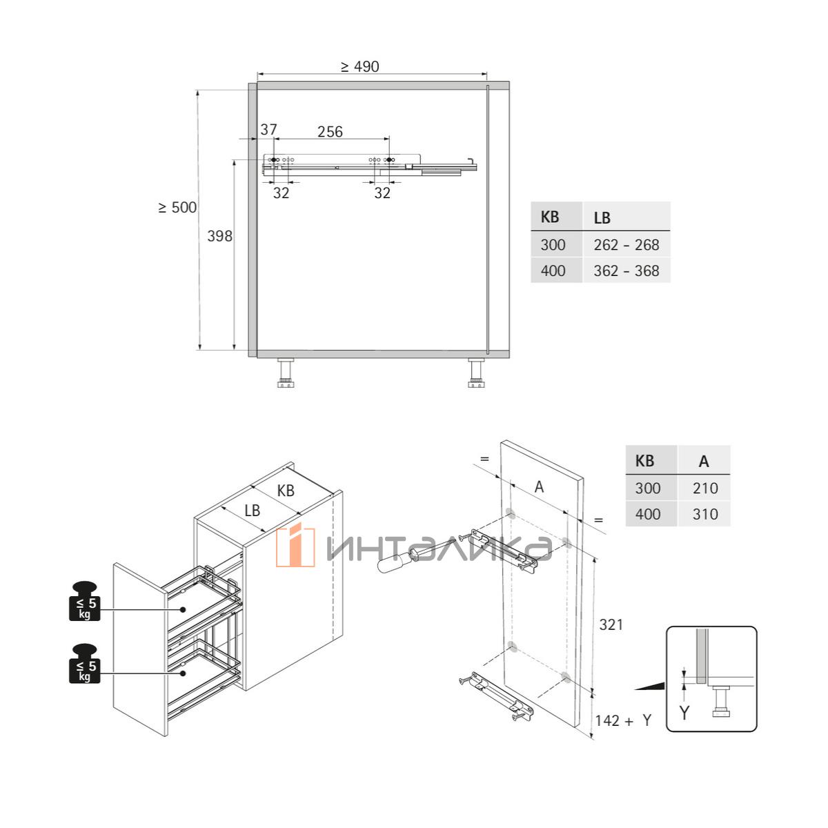 Примечание: для ограничения пространства опционально применяется разделитель для выдвижных корзин Lario 400 с плоским релингом