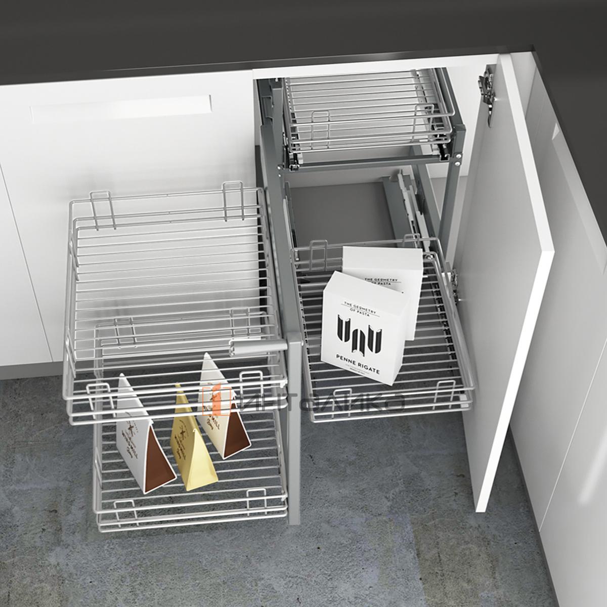Комплект полок выдвижной системы HETTICH ORTA в угловые шкафы с распашными фасадами