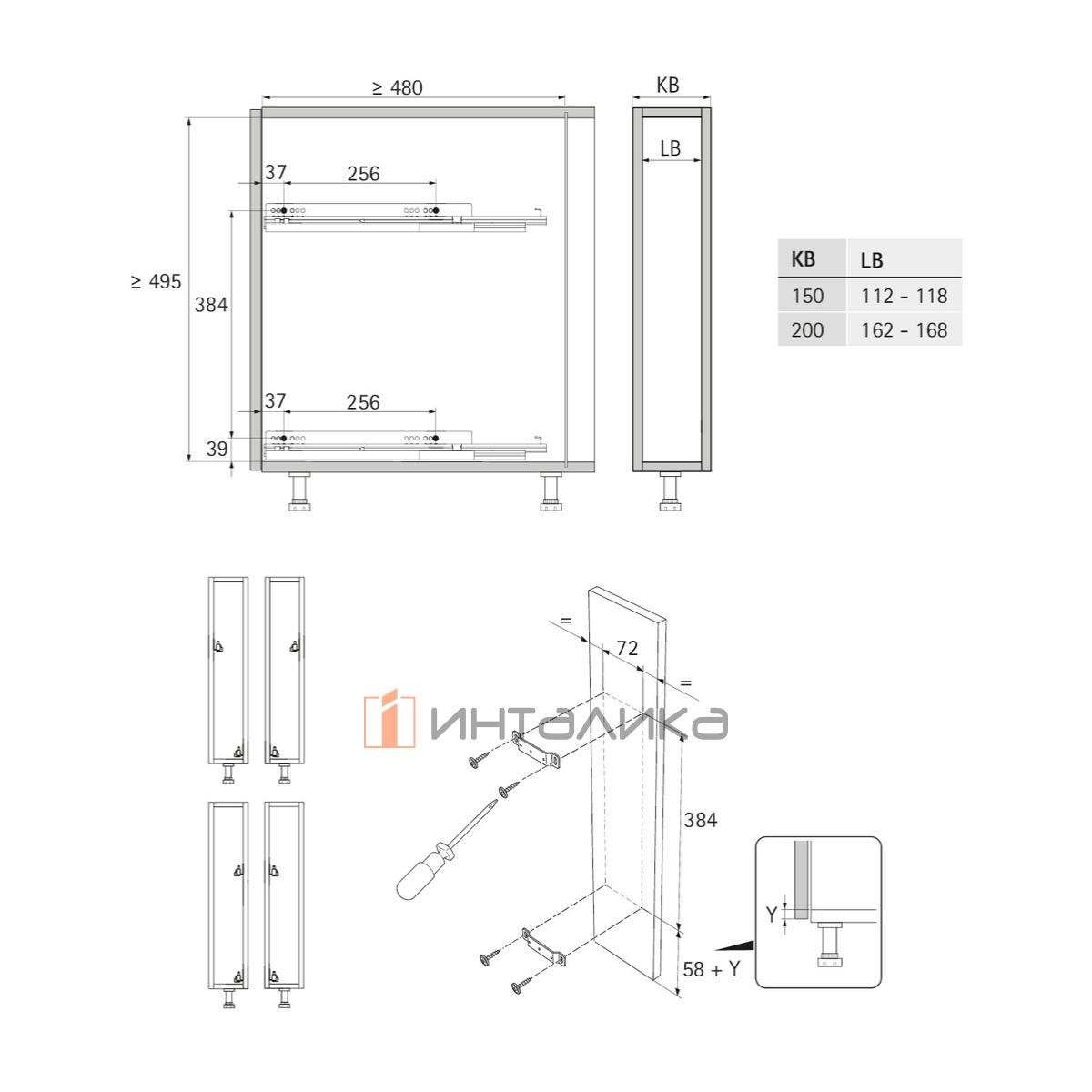 Набор двухъярусной бутылочницы HETTICH LARIO 200, KB150, NL470, Quadro V6 SS, Anti Slip, правая, антрацит, HL2152ASAR