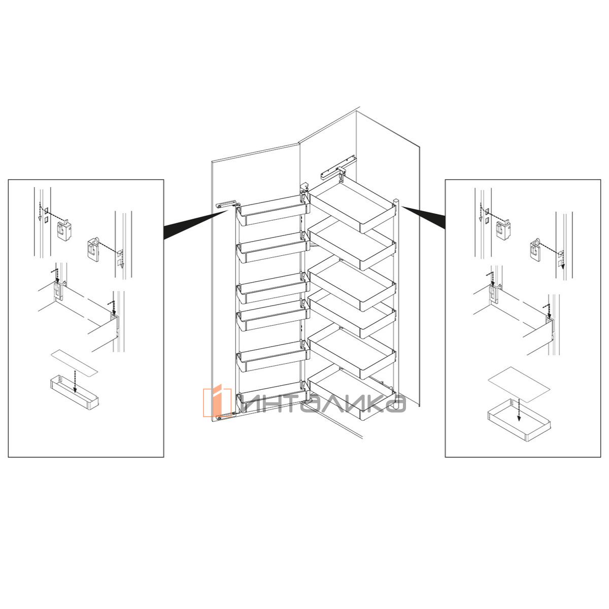 Комплект навесных полок для распашного шкафа-колонны Hettich ISEO