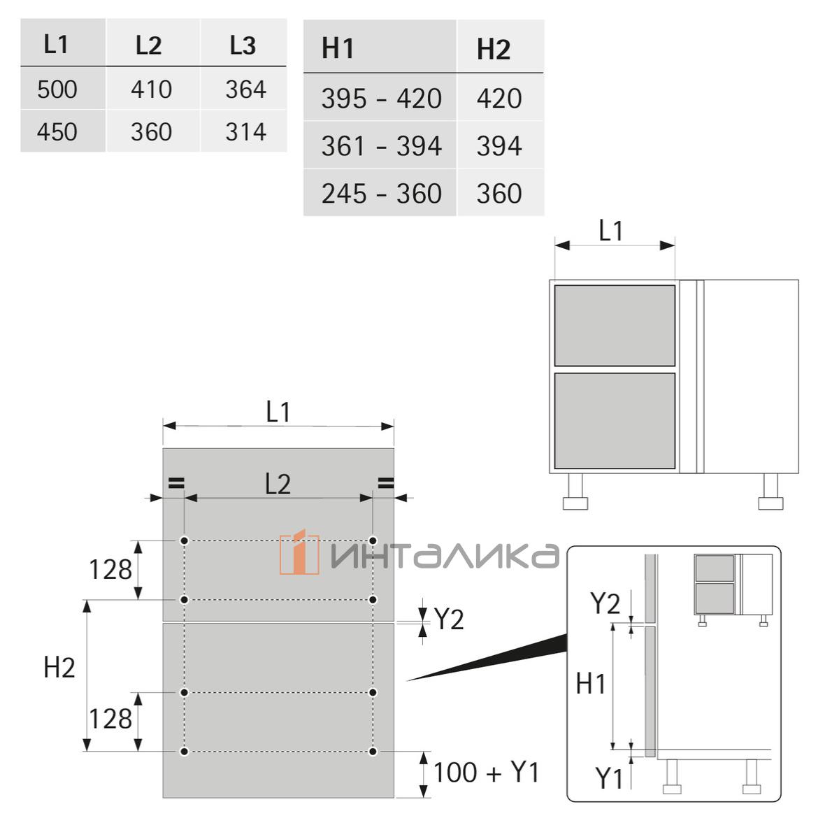 Габаритная ширина фасада - 450 мм