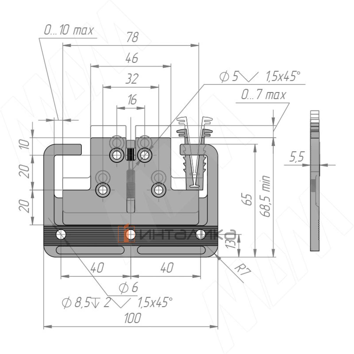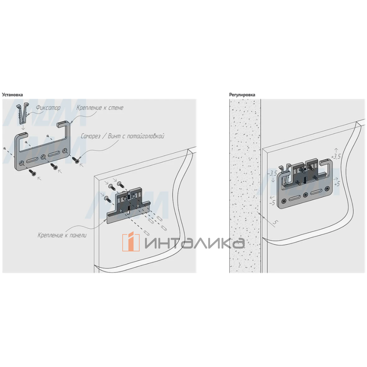 Регулировка: ±5 мм по горизонтали и ±3,5 мм по вертикали