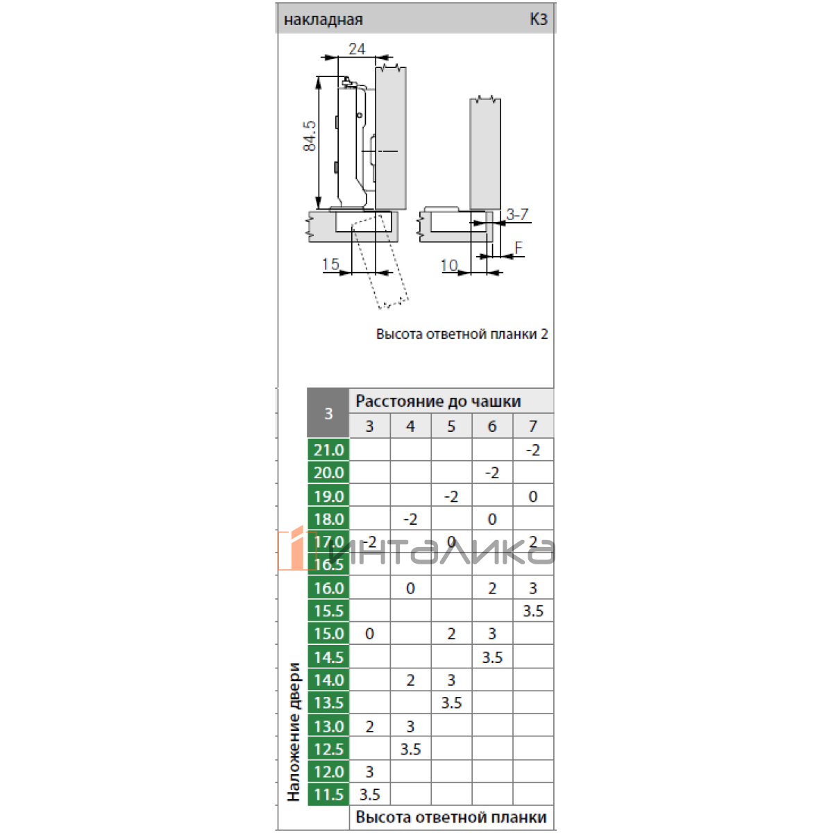 Применяется для открывания мебельных фасадов толщиной от 16 до 24 мм