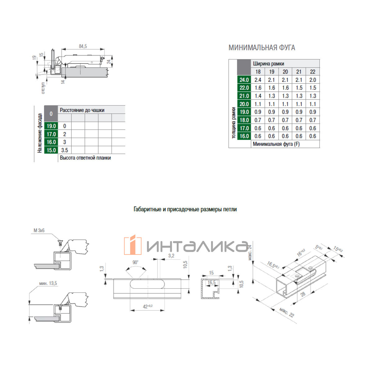 Применяется для открывания мебельных фасадов толщиной от 16 до 24 мм