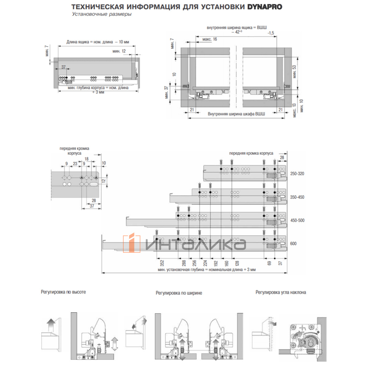 Встроенная 3D регулировка: по высоте до + 3,5 мм, по ширине +/-1,5 мм, по углу наклона фасада +4 мм, без использования инструментов