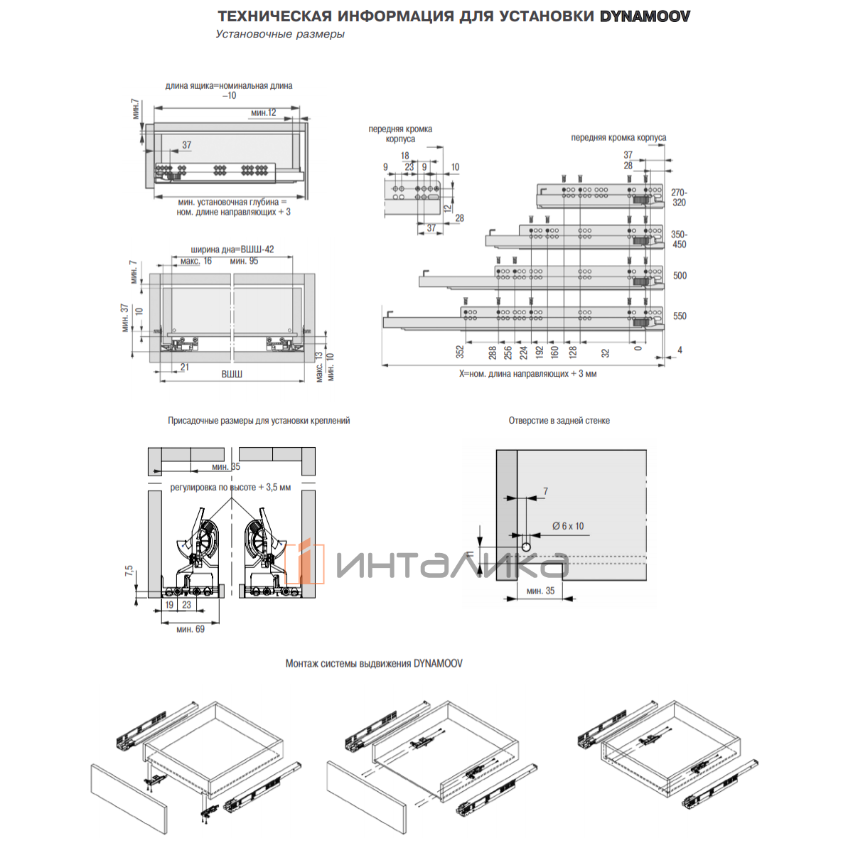 Примечание: крепления направляющих в комплект не входят, приобретаются отдельно