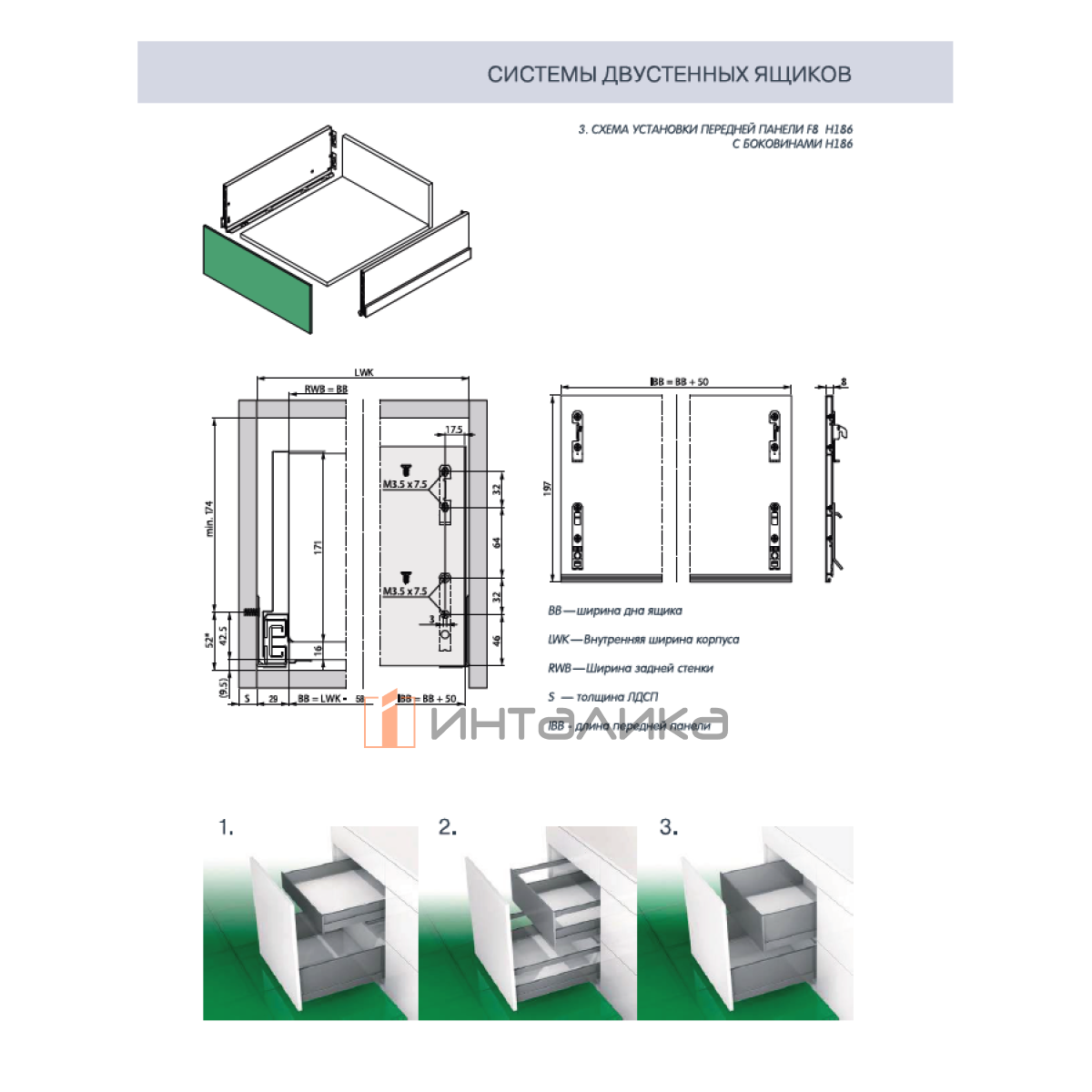 Плавная автоматическая фиксация выдвижного ящика при установке на направляющие