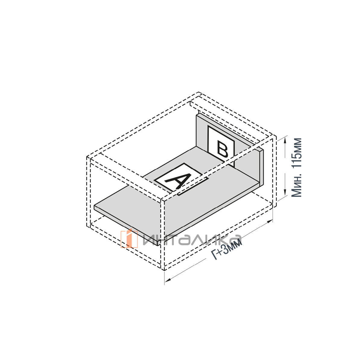 Дополнительно к выдвижному ящику требуется днище и задняя стенка из 16 / 18 ДСП