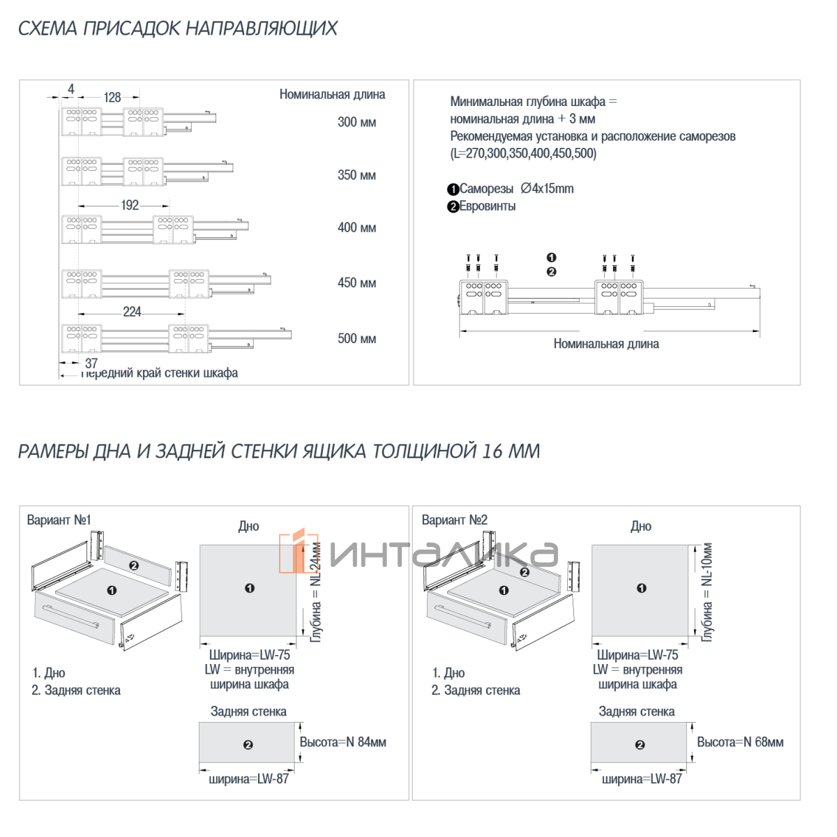 Дополнительно к выдвижному ящику требуется днище и задняя стенка из 16 /18 ДСП