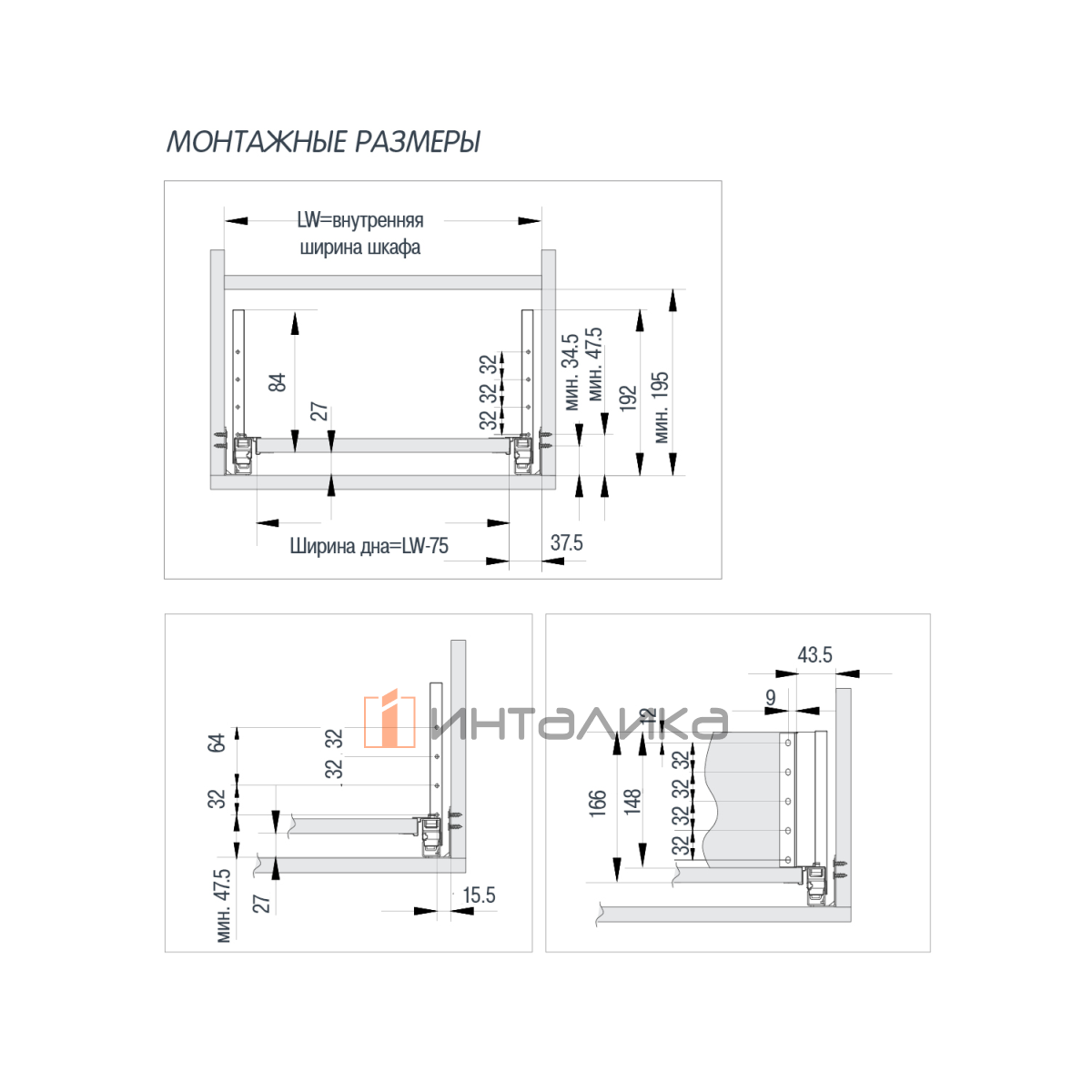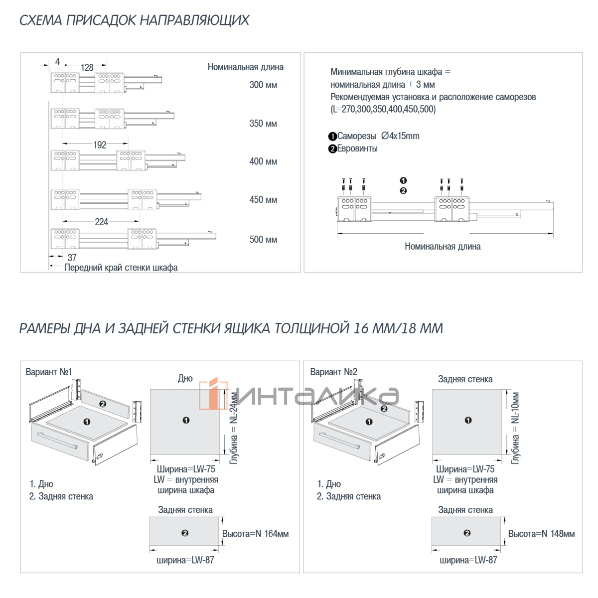 Дополнительно к выдвижному ящику требуется днище и задняя стенка из 16 /18 ДСП